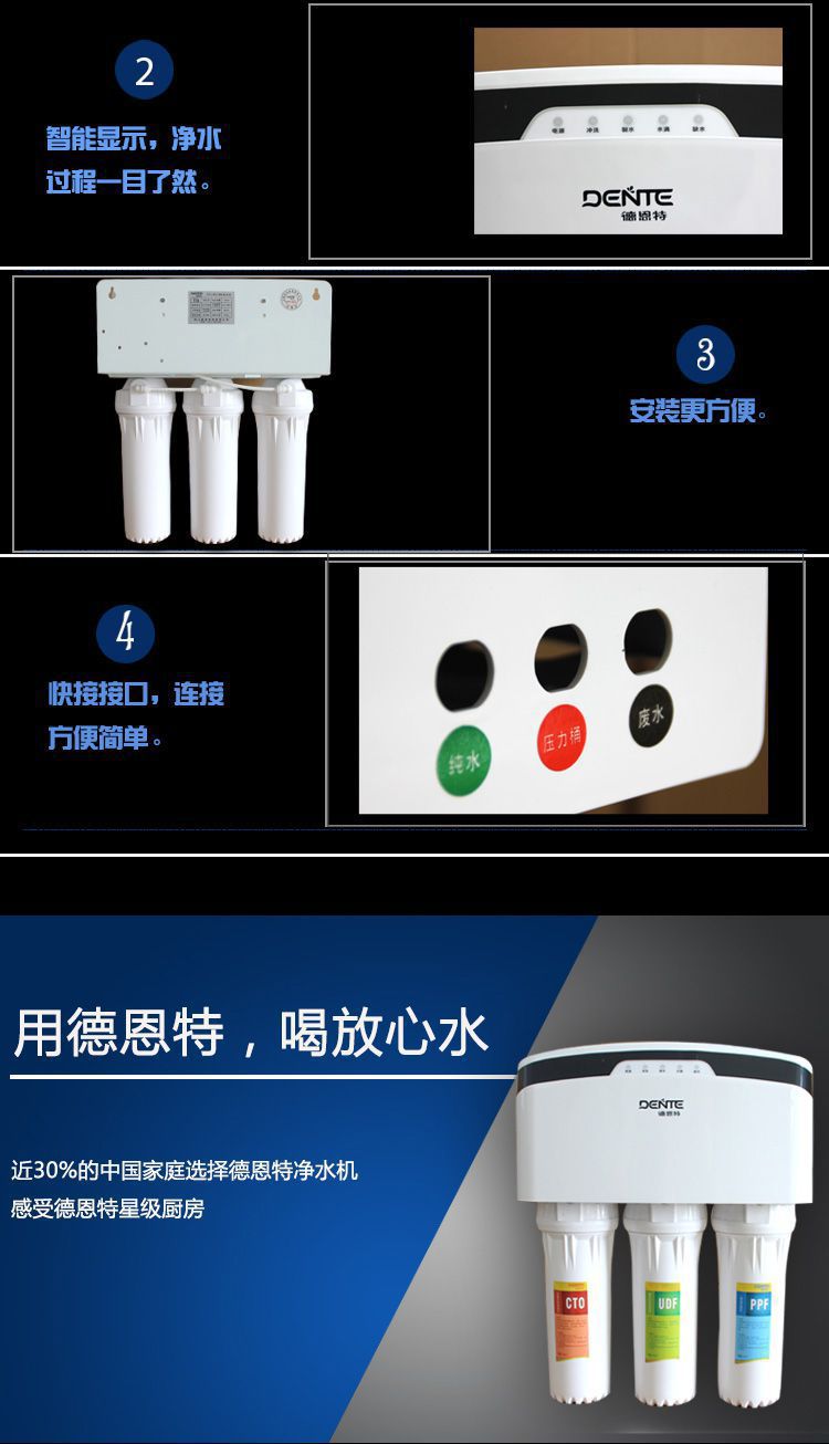 德恩特 RO-D廚下反滲透凈水器 五級(jí)過濾 定制專用